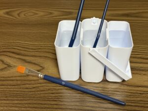 この時アクリル絵の具が残っていると、固着して次回使えません。