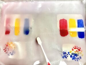 また、絵の具が染みるので裏にはクリアファイルやクッキングシートなどを敷きましょう。