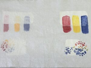 ・布用メディウム(柔らかい仕上がり)やファブリックメディウム(定着力が強い)という添加剤をアクリル絵の具に混ぜることで布地に染み込み易くなり、洗濯にも強くなります(木材や金属、プラスチック等に使用する時も下地剤やメディウムが必要)
